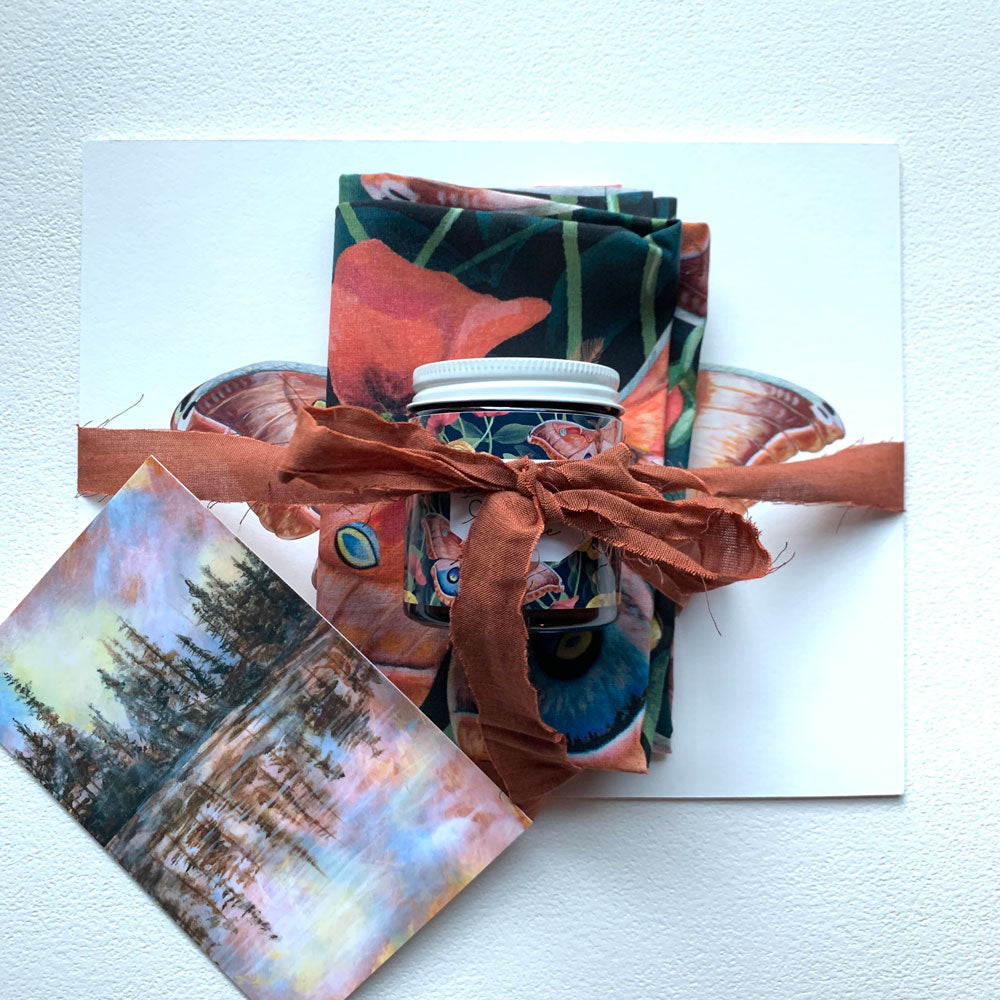 Midnight Garden Gift Set Moth Poppies Tea Towel Candle Art Print The Copper Wolf